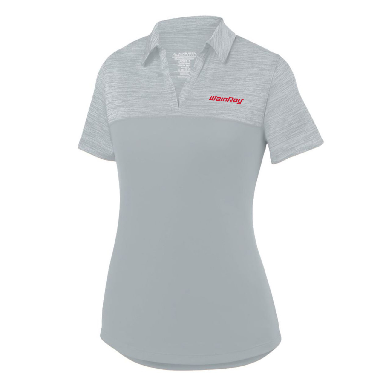 DESCRIPTION: 4.3 ounce 100% polyester heathered wicking knit top body, collar and sleeves 3.3 ounce 100% polyester wicking knit solid body Wicks moisture Tag-free label Self-fabric collar Box-stitched placket Three matching buttons with cross-stitching Set-in sleeves