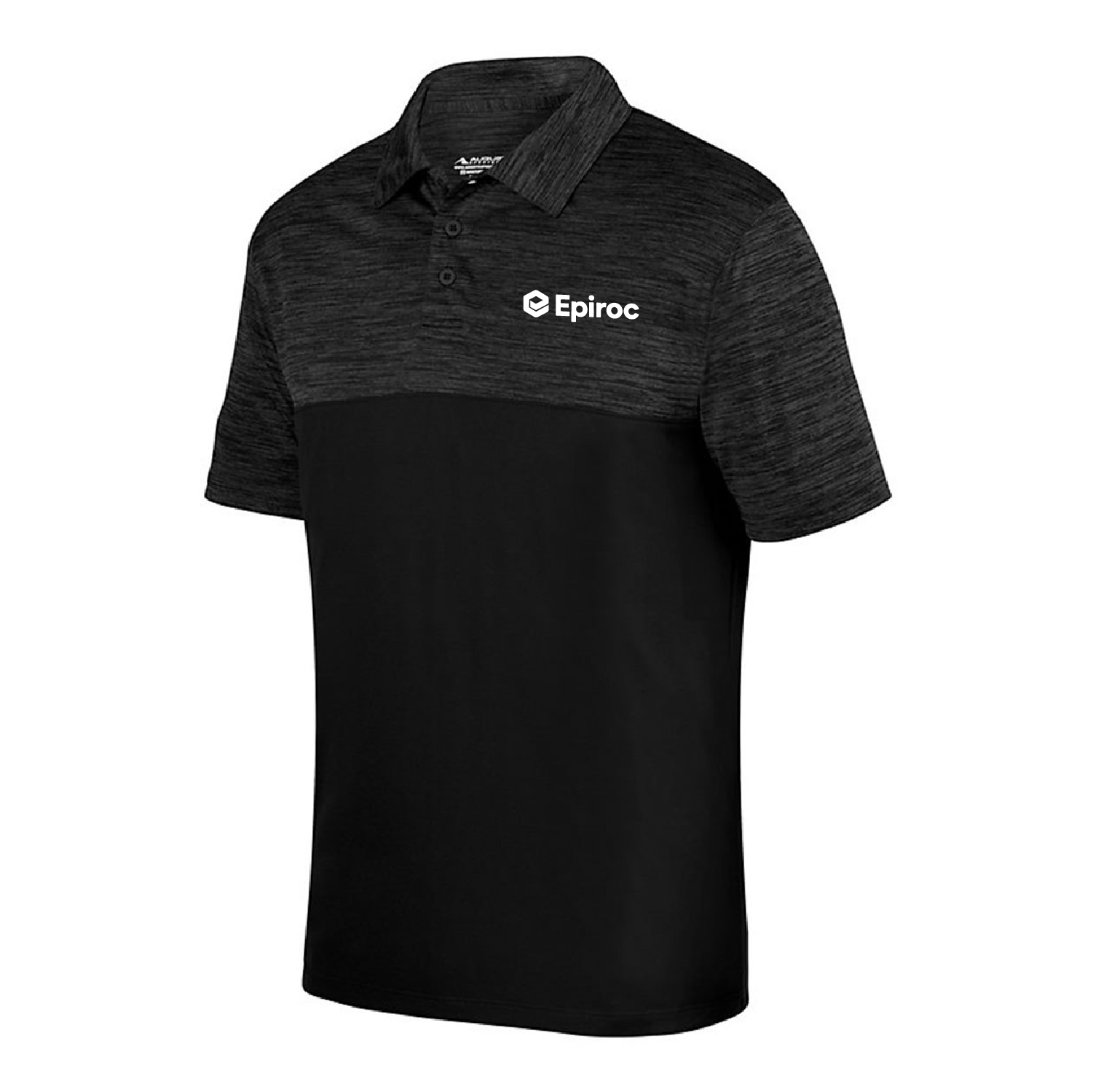 DESCRIPTION: • 4.3 ounce 100% polyester heathered wicking knit top body, collar and sleeves • 3.3 ounce 100% polyester wicking knit solid body • Wicks moisture • Tag-free label • Self-fabric collar • Box-stitched placket • Three matching buttons with cross-stitching • Set-in sleeves