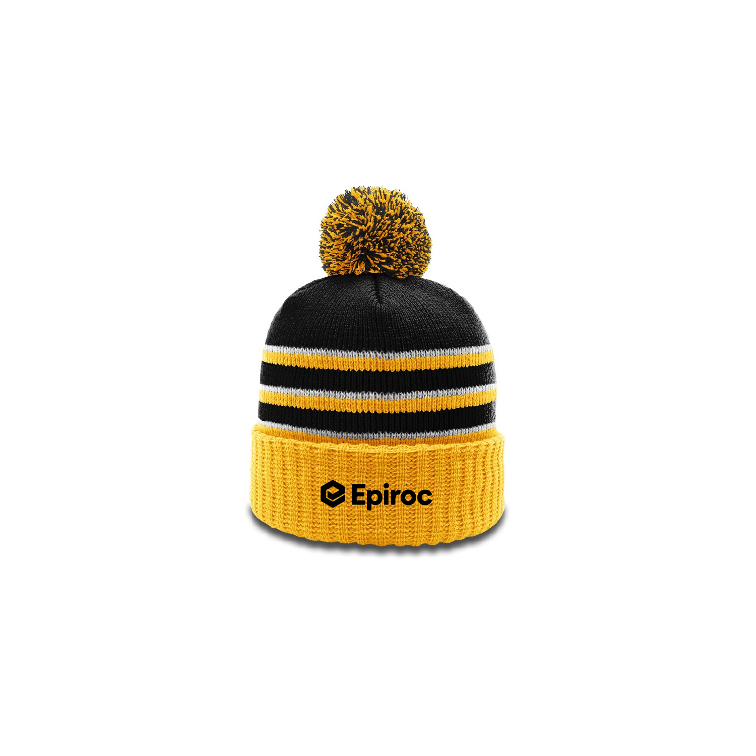 Stripe Knit Beanie w/Cuff & Pom - Epiroc